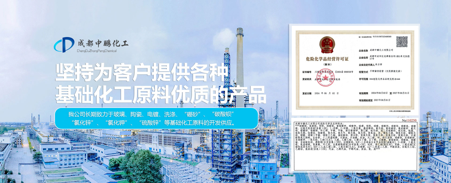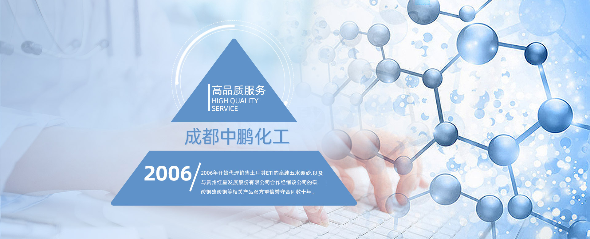 成都中鵬化工有限公司成立于2001年,位于成都市新都區(qū)木蘭木名商塑化城2棟11號,公司成立16年以來,一直堅持為客戶提供各種基礎(chǔ)化工原料的產(chǎn)品。我公司長期對于玻璃、陶瓷、電鍍、洗滌、“硼砂”、“碳酸鋇”、“氯化鋅”、“氯化鉀”、“硫酸鋅”等基礎(chǔ)化工原料的開發(fā)供應(yīng)。 公司現(xiàn)在員工上百人,在全國擁有多個營銷體系和完善的售后服務(wù)體系,長期以來,通過為客戶提供各種基礎(chǔ)化工原料的產(chǎn)品,形成了良好的合作關(guān)系...